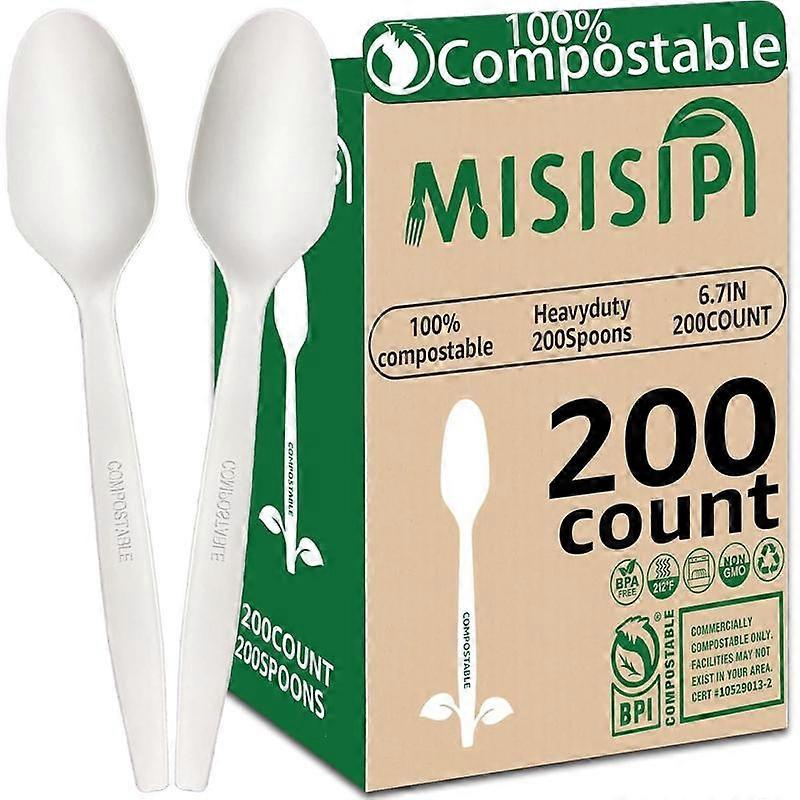 200Count Compostable Spoons Biodegradable Spoon HeavyDuty No Plastic Spoons HeavyWeight Disposable Spoon Tableware Set for Lounge,Party,BB