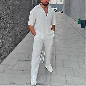 Mens Summer Outfit 2-Piece Set Short Sleeve Button Shirts and Pants Sweatsuit