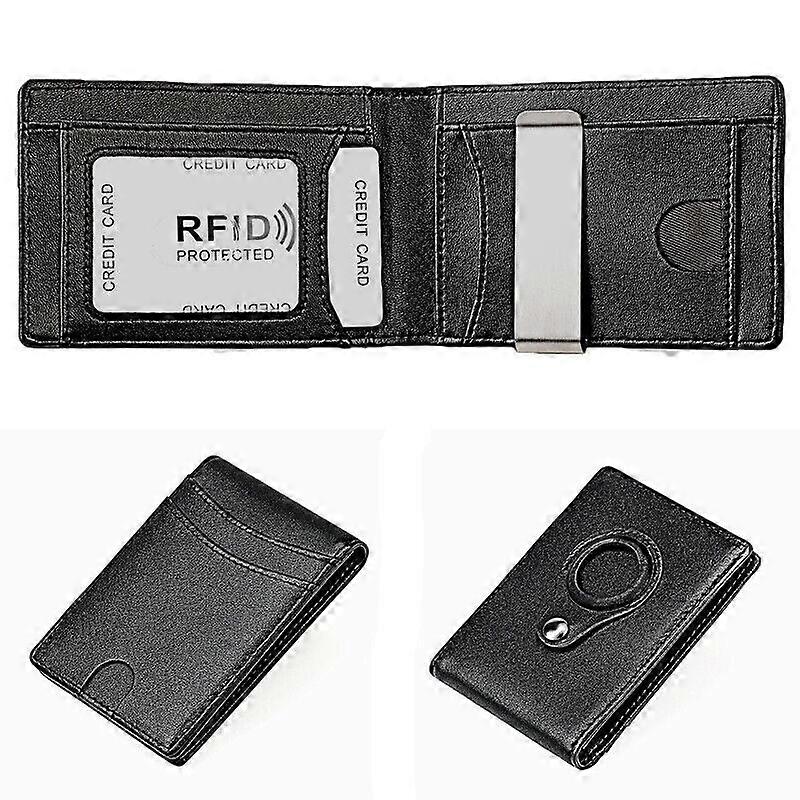 Men Slim Airtag Wallet with Money Clip RFID Blocking Leather Card Air Tag Case