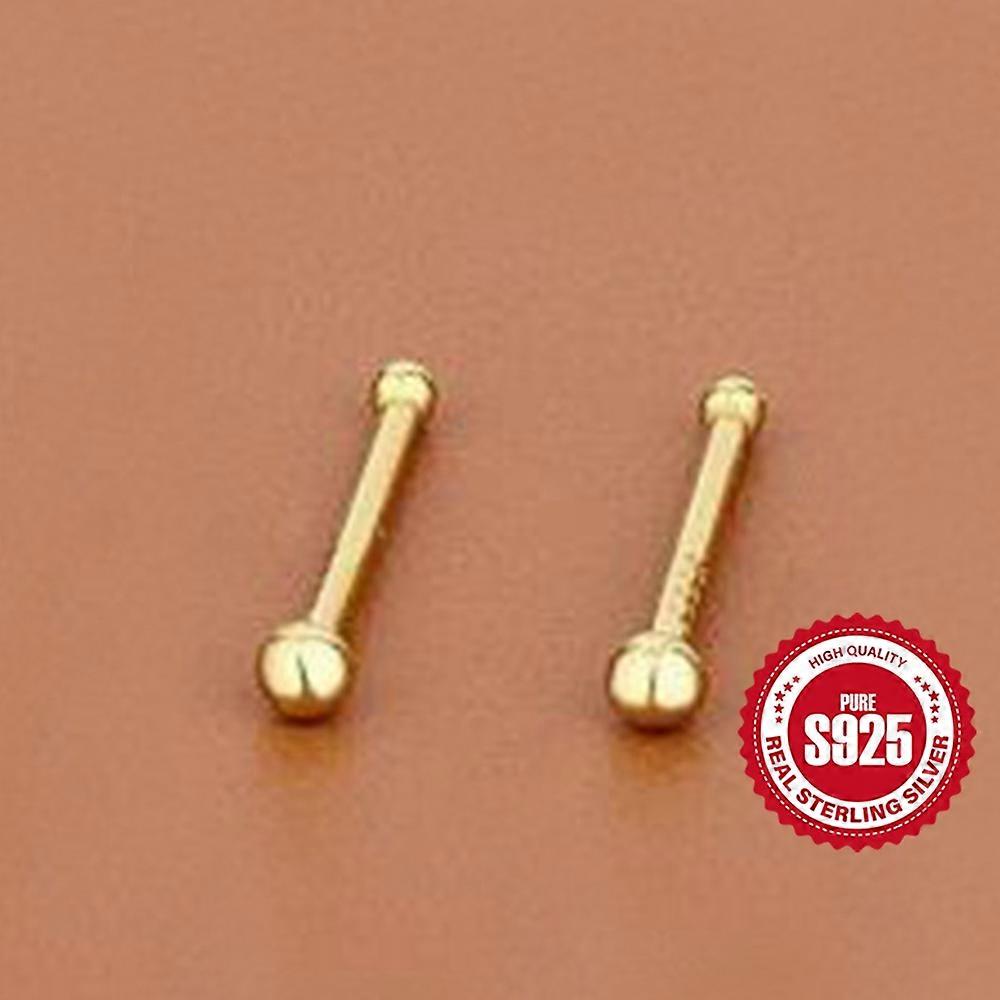 Aide 925 Sterling Silver Four-Claw Zircon Gold Plated Ball Piercing Bar Stub Earring Women Minimalist Daily Jewelry Party Gift