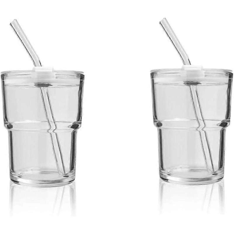13OZ/400ML Ice Coffee Glass Tumbler with Straw and Lid Sealed Carry On, Thick Wall Water Glass Cup Mug (Clear)