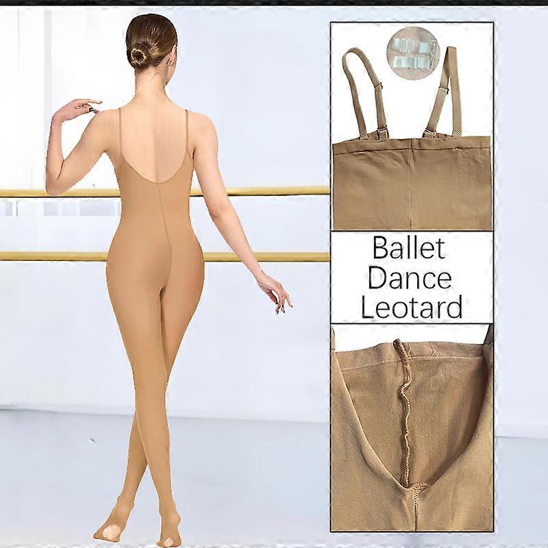 Women's Ballet Gymnastics Full Body Nude Tights Dance Convertible Tights with Adjustable Shoulder Transparent and Nude Straps