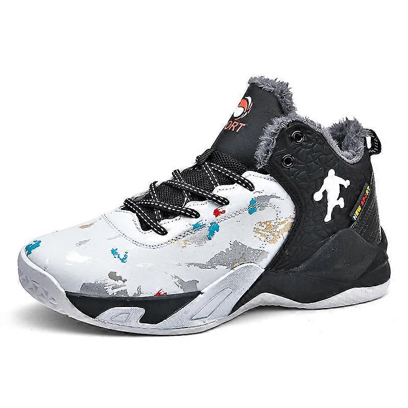 Men's fleece-lined sports winter shoes, trendy student sneakers, men's basketball high-tops