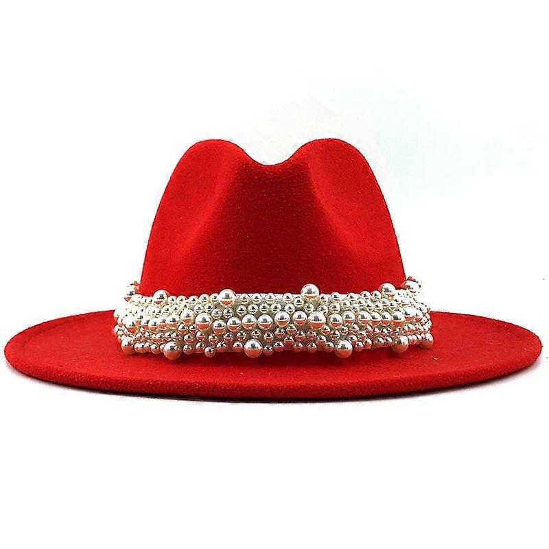 Jazz Fedora Hats with Pearls Band Women Wide Brim Trendy Top Cap Sunhat Outdoor