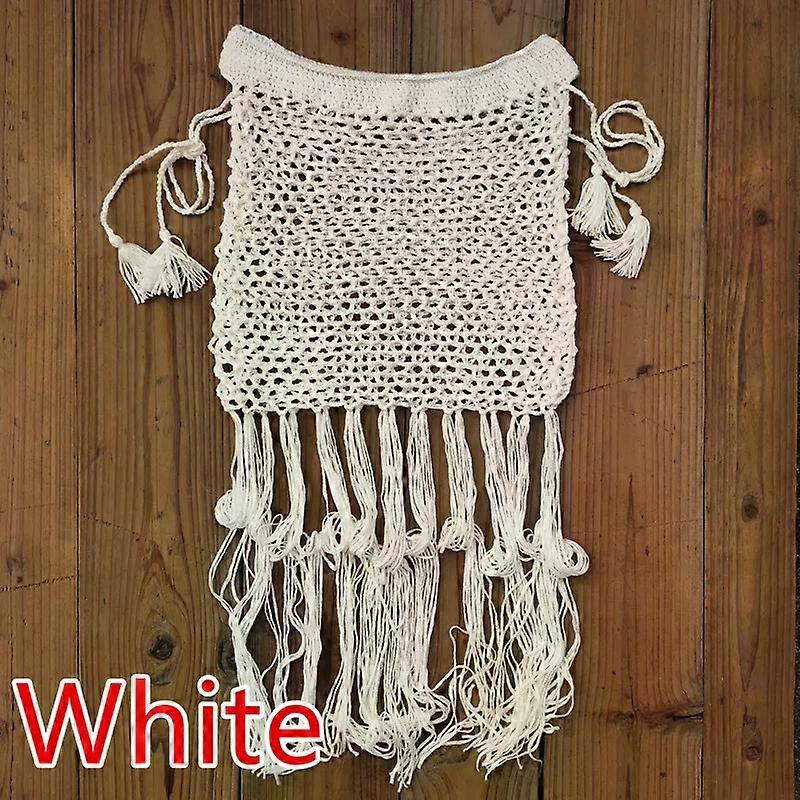 Gypsy Boho Hand Crochet Tassel Skirt, with long fringe Beach Skirt Net clothing