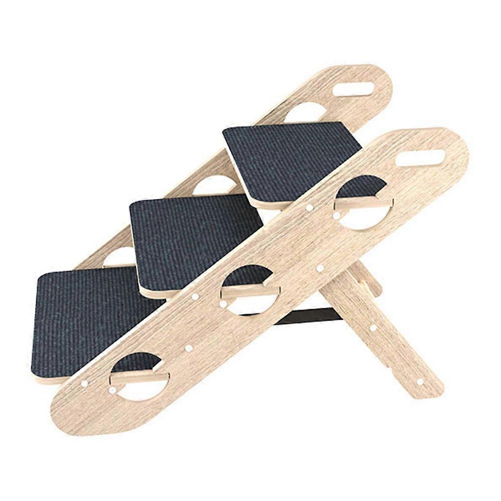 3 Steps Folding Pet Stairs for Senior Dogs Cats Portable Wooden Frame Anti Slip Ramp Ladder