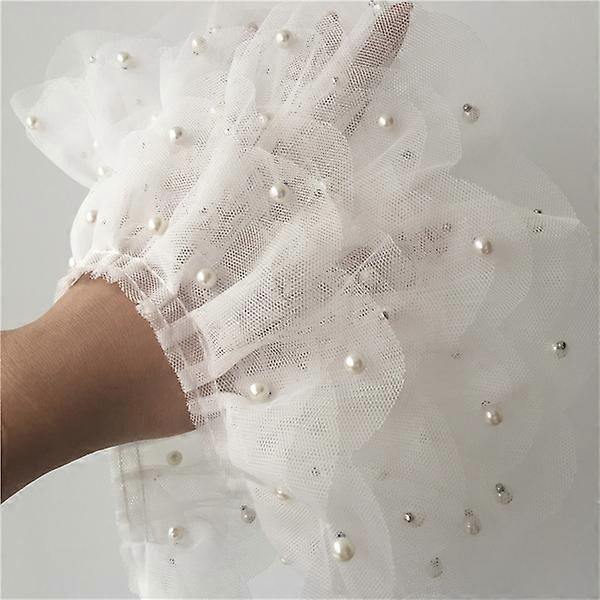 White Bead Floral Pleated Flower Embroider Lace Trim Fabric Wedding Dress Trouser Leg Wrist Sewing Clothing Accessories 6.5cm