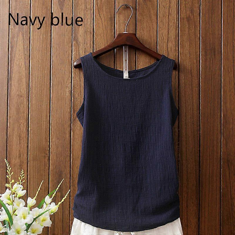 Lady Cotton Linen Vest Tank Tops Summer Scoop Neck Sleeveless Blouse Basic Shirt