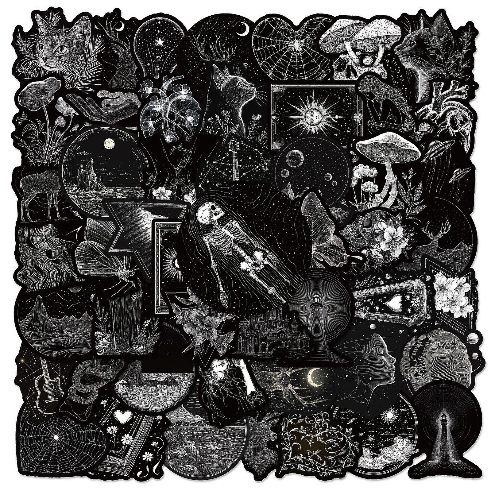 50Pcs Black And White Gothic Stickers Gothic Skull DIY Stickers Scrapbooking Phone Luggage Skateboard Waterproof Decals