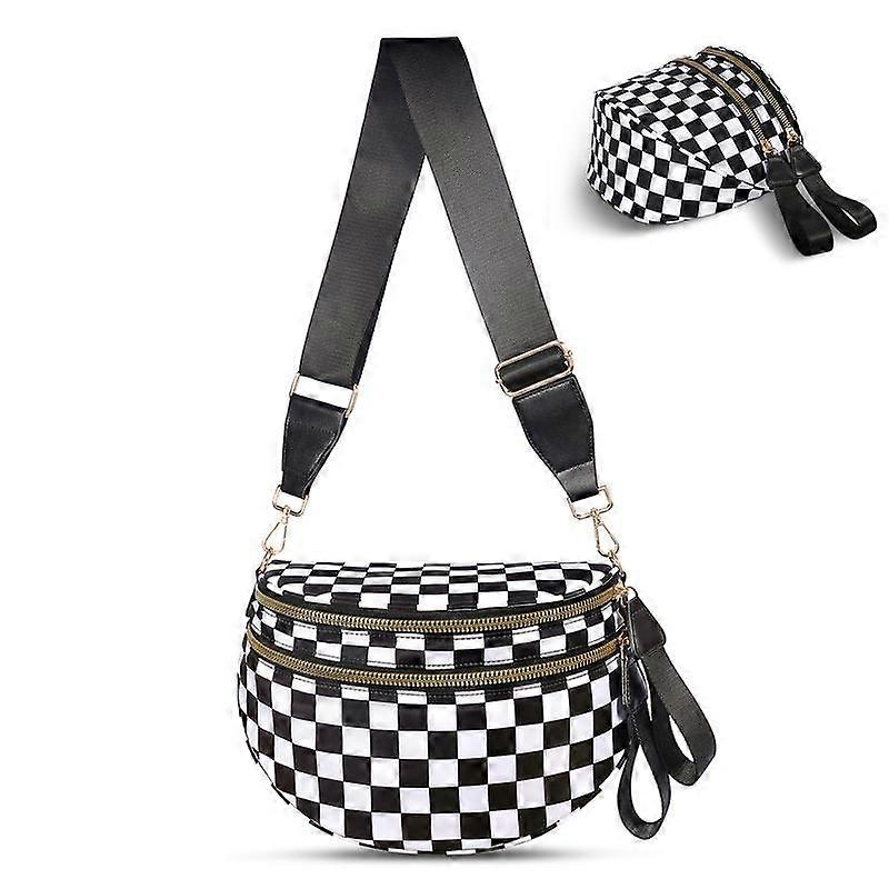Black and White Checkered Nylon Bum Bag Plus Size Friendly Fanny Pack - Spacious Design for Essentials - great gift belt bags crossbody Tik