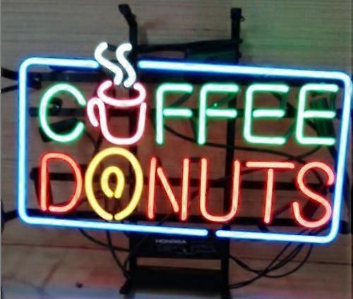 COFFEE & DONUTS Real Glass Neon Sign - Handmade Retro Diner Wall Art for Cafe, Kitchen & Bakery Decor - 17"x14"