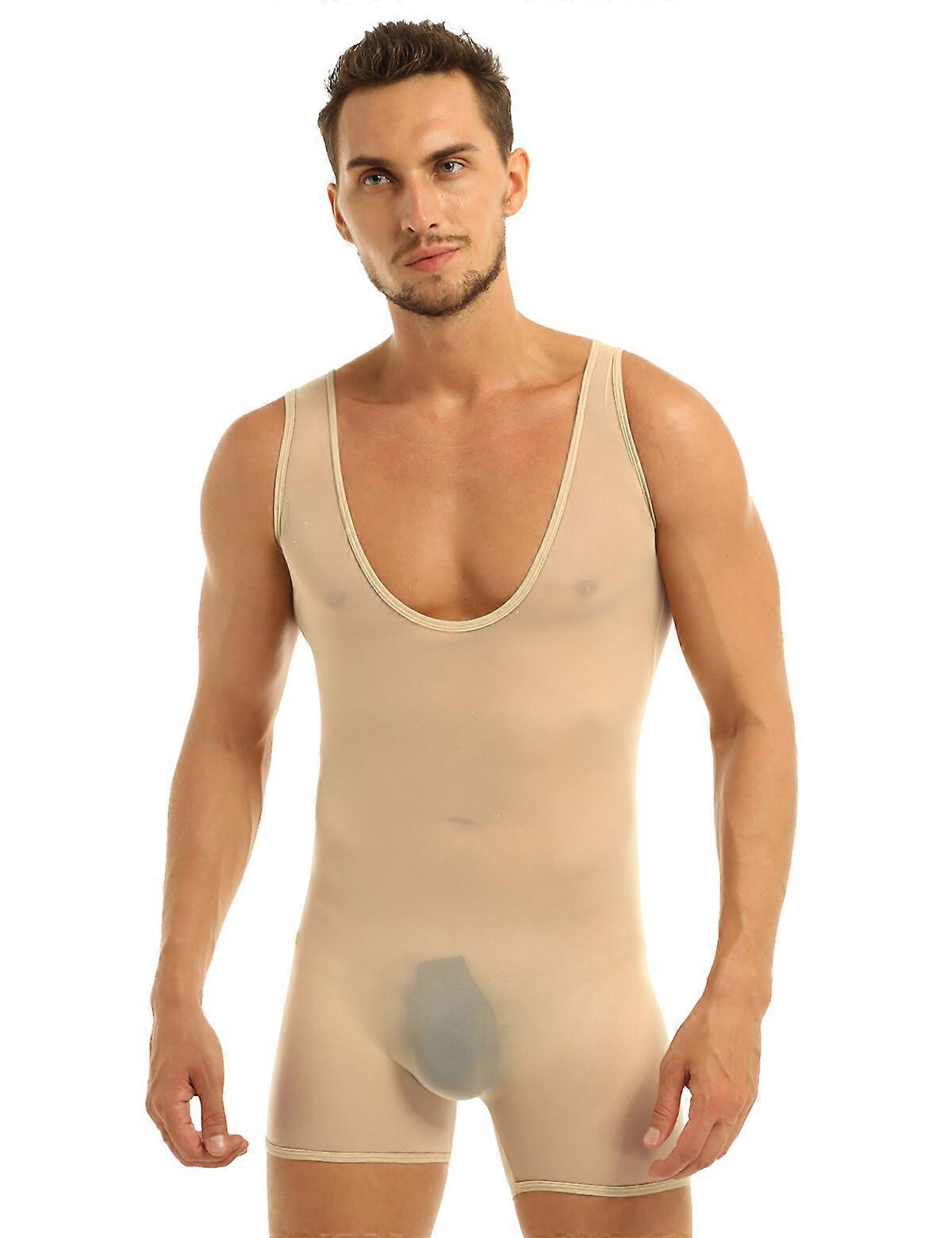 Men Bodysuit Mesh One Piece Leotard Jumpsuit Wrestling Singlet Underwear Briefs
