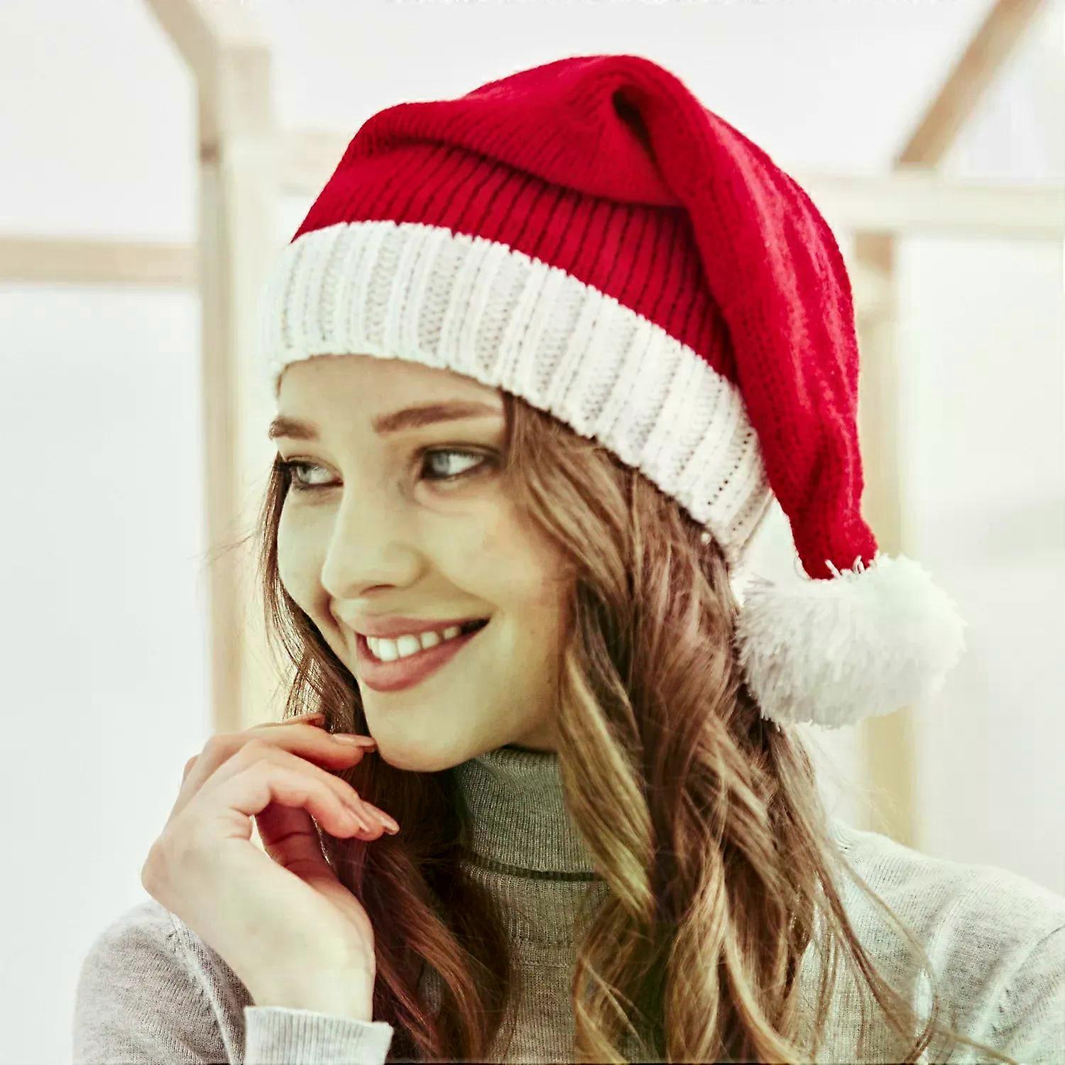 unique 2025 Knitted Christmas Hats Cute Pompom Adult Kids Soft Beanie Hat New Year Party Kids Gift Navidad Noel Christmas Decoration