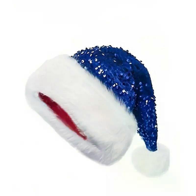 unique Elegant Sequined Christmas Hat with Double Layer Design, Red Santa Cap with Plush Pompom for Xmas Party and New Year Celebration