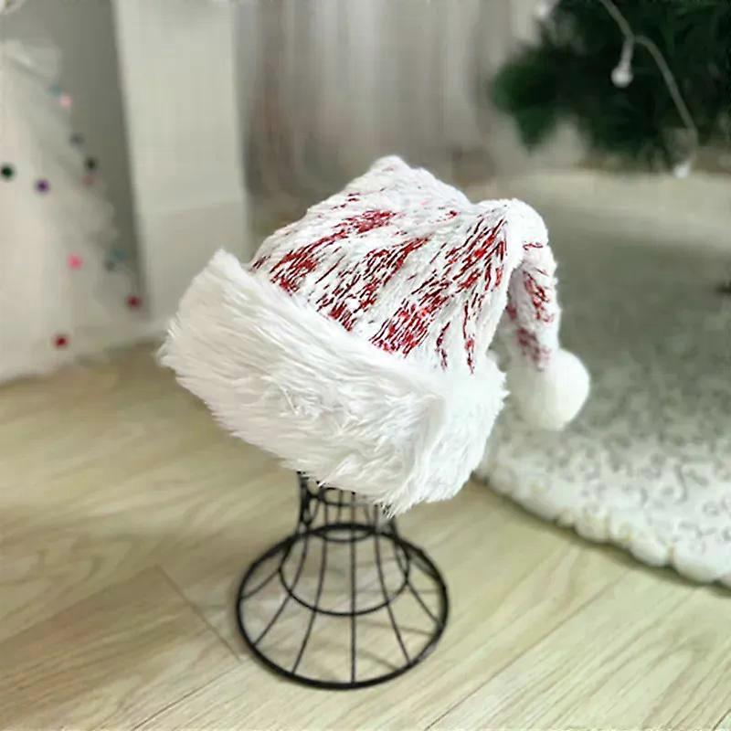 unique White Soft Plush Christmas Hat Party Snowflake Santa Hats White Xmas Decoration Hat New Year Decoration Holiday Party Supplies