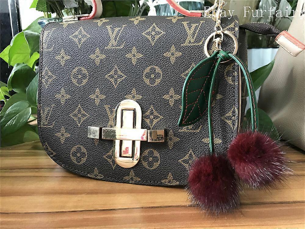 Fruit Mink Fur Cherry Charm Keychain Car Key Ring Keys Finder Phone Pendant