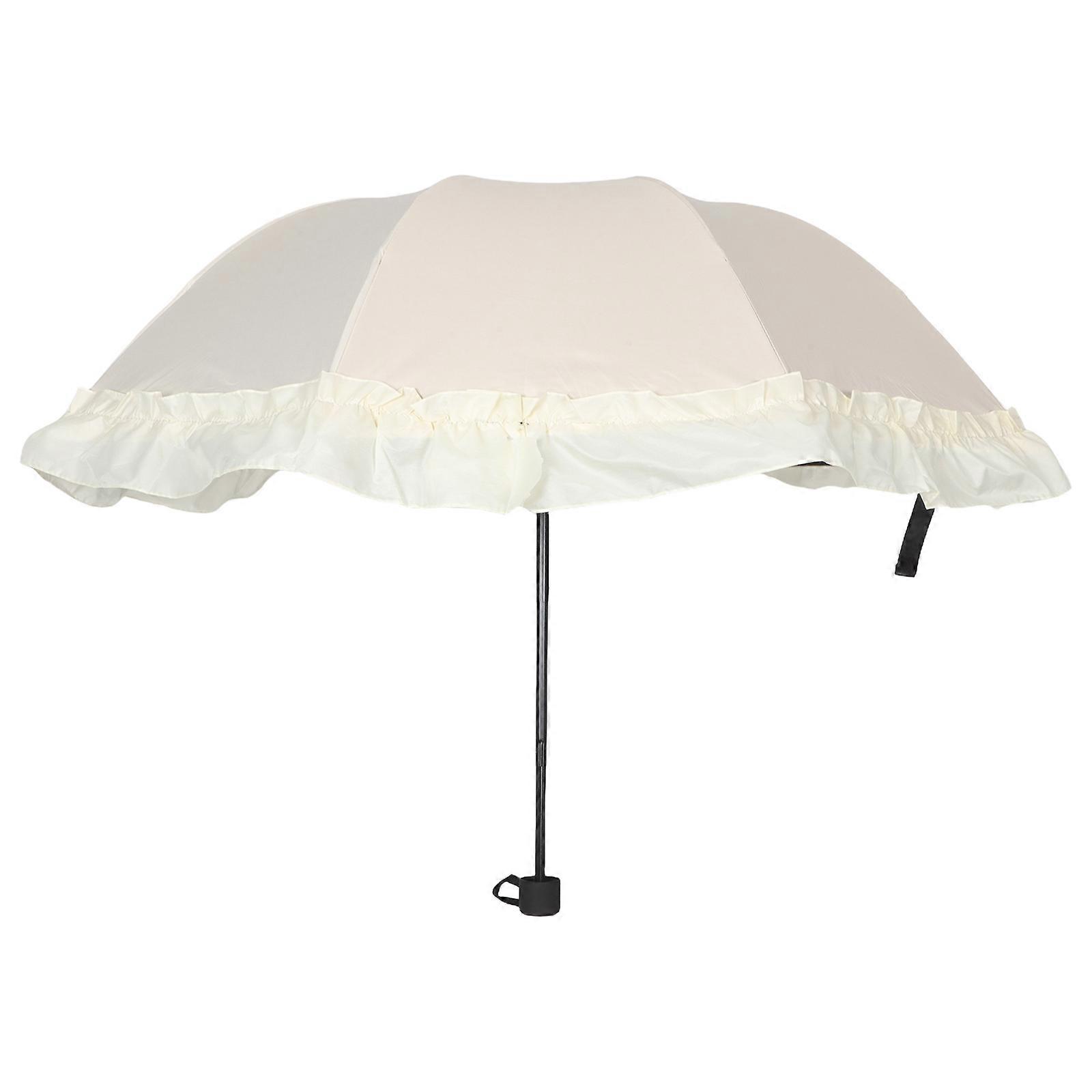 Elegant Beige Lace Sun Umbrella with UV Protection for Outdoor Use, Portable Design,