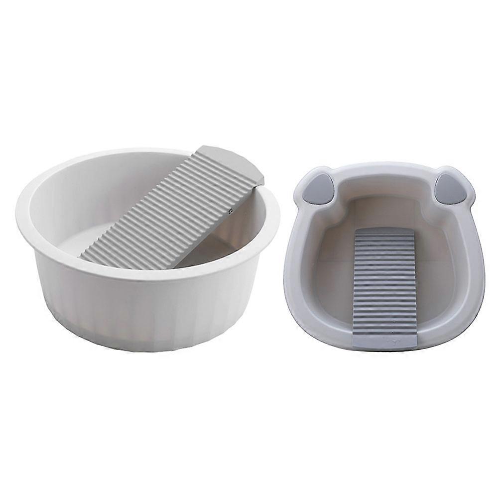 2pcs Portable Baby Clothes Wash Basin with Non Slip Washboard Plastic Hand Laundry Tub for Home and Travel
