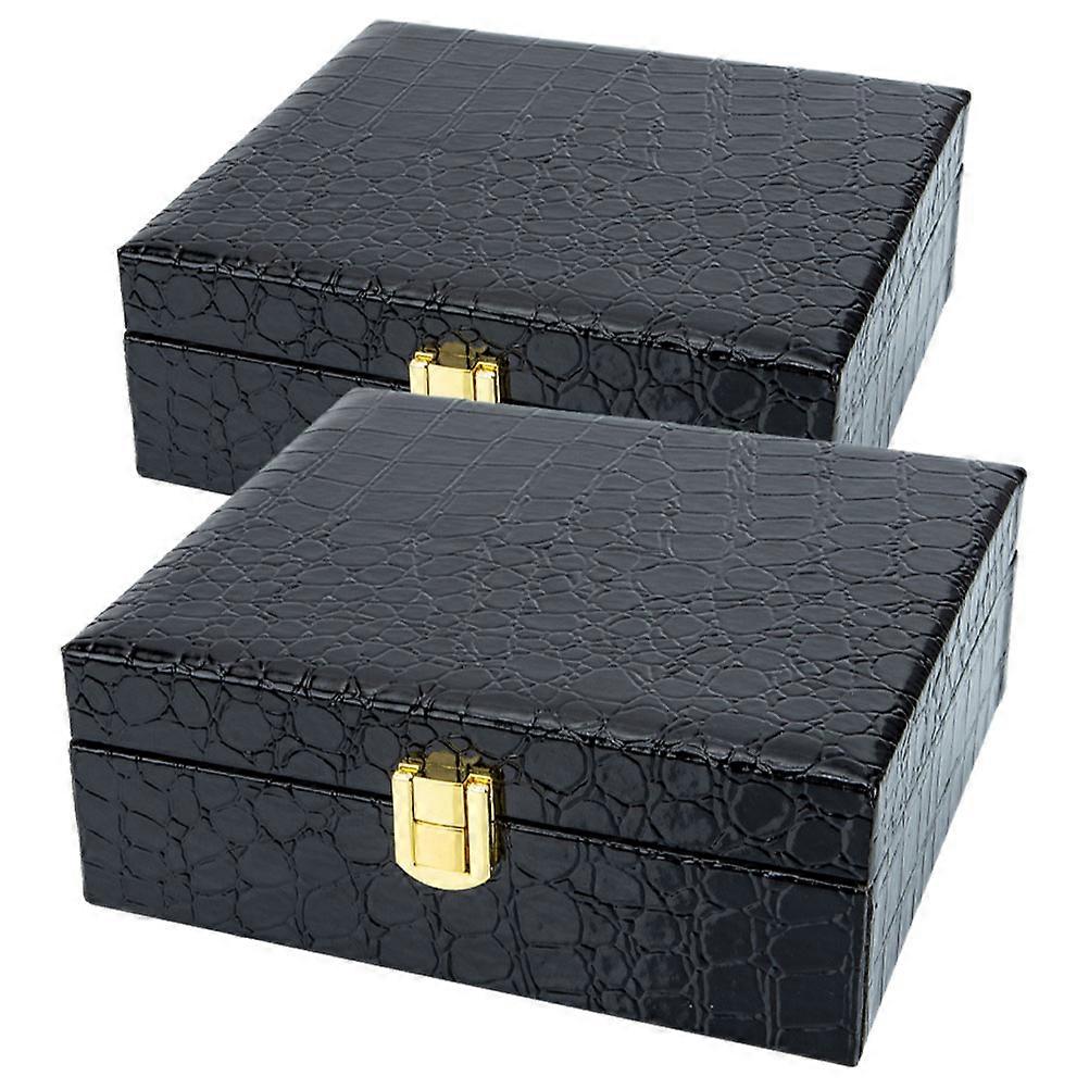 Portable Cigar Box with Lock and Handle Made of Iron and PU Black Color for Storage Use 2Pcs