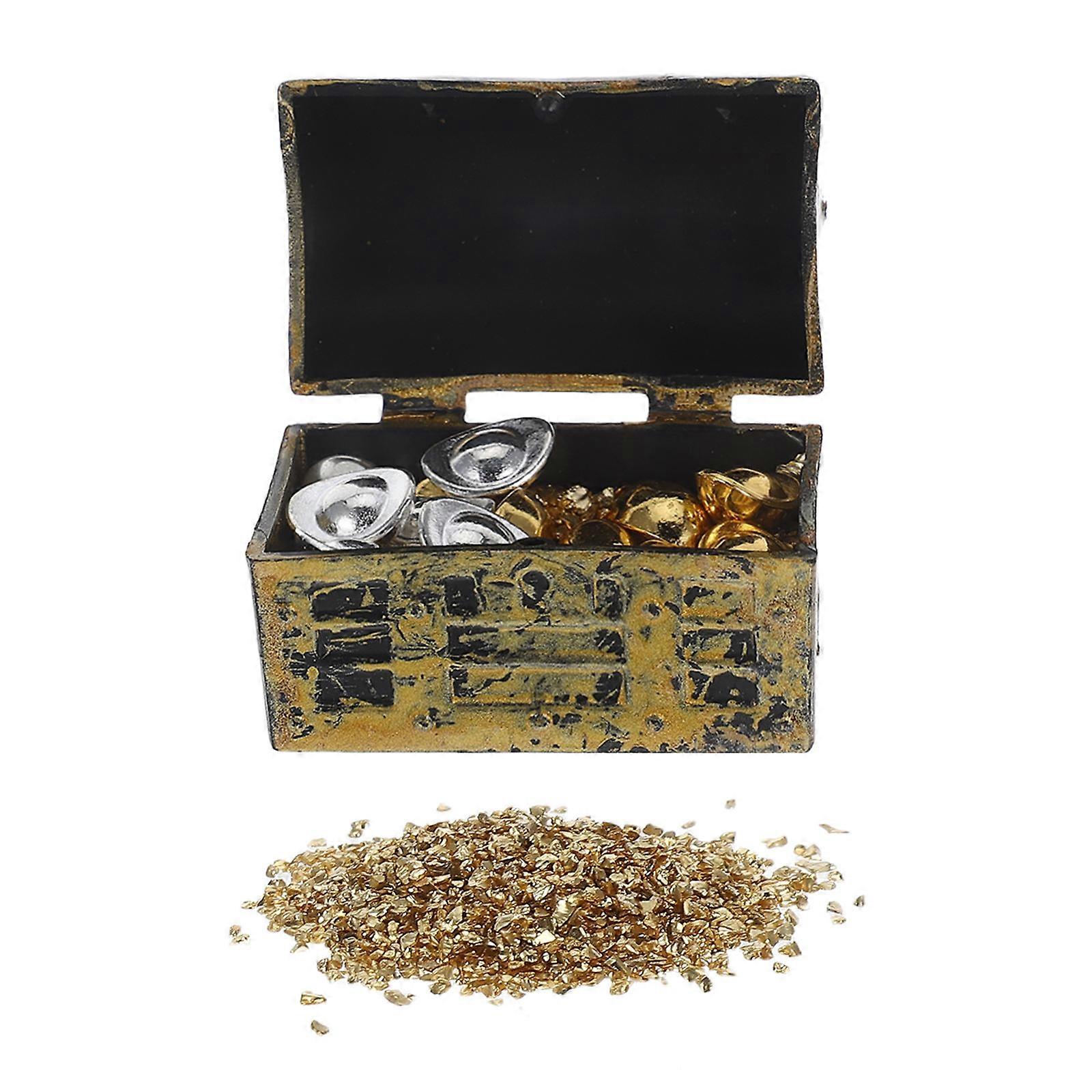 Miniature Dollhouse Treasure Chest Decorations for Play 1Set Golden Alloy