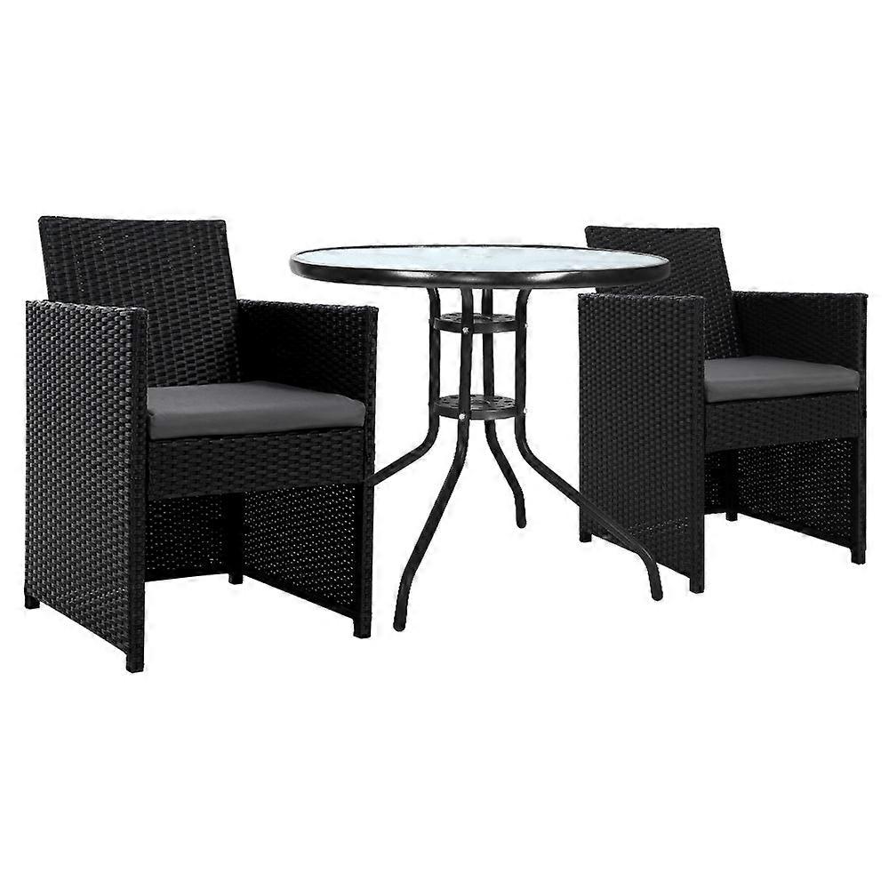 Enjoy The Pleasant Outdoors Or Have A Nice Chat With Friends Over A Cuppa With Our Gardeon Outdoor Bistro Set. With Its Chic And Trendy Profile The Set Comes With A Glass-Top Table And Two Wicker Chairs. The Elegant Table Is Stunning In Looks And Equally As Functional. The Thick Steel Frame Makes It Durable And The 5Mm Thick Tempered Ripple Glass Does Not Only Look Stylish It Is Easy To Clean. Plus There Is A Built-In Hole For Your Parasol For You To Relax Outdoors For As Long As You Like During The Hot Summers Without The Fear Of Getting Sunburnt. The Chair Is Finished In Meticulously Weaved Uv-Resistant And Weather-Resistant Pe Wicker With A Strong And Sturdy Steel Frame Construction. The Exotic Design Spacious Seating And 5Cm Thick High-Density Foam Cushions Ensure Comfort And Style Are Always In Place. Best Of All The Removable And Washable Seat Cushion Cover Makes Cleaning Up Hassle-Free. Together The Set Is Designed To Please As Well As Stand Up To The Weather Elements And The Non-Slip Feet Make The Set Suitable For Use In Even The Most Slippery Of Situations. With So Much Going For It The Bistro Set Certainly Deserves Its Coveted Space In Your Lovely Backyard Deck Or Patio. Or Even Indoors For A Unique Presence.
