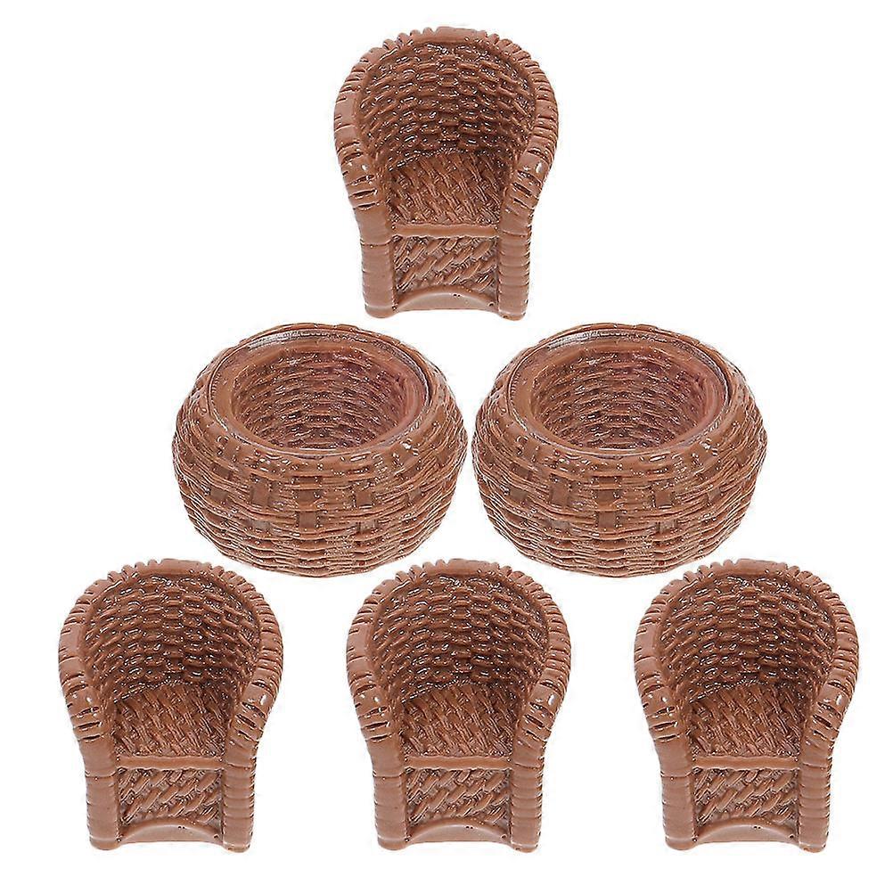 Brown Resin Miniature Table and Chairs for Dollhouse 1Set Set Accessories