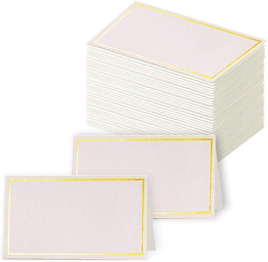 Wide UseThe unique texture table cards leaves a great first impression on wedding, Catering, banquet, dinner, Thanksgiving, Christmas Holiday, Easter, party and other holidays. The position cards could also be used in a birthday party, bridal showers, baby showers, anniversary party and more.Impress Your GuestsPackage includes 100Pcs place cards with luxurious gold foil borders. All of the place cards for weddings are made of 250 gsm extra thick paper, with sturdy and high quality. Each place card is textured, and the beautiful and smooth texture makes them look very elegant, which will surely impress your guests.Perfect Size Folded table name place cards have a dimension of 3.5 x 2 inches, unfolded texture name cards for table have a dimension of 3.5 x 4 inches. The large blank provides sufficient space to write guest's name and the table number.Exquisite Design The wedding place cards employ gold foil frame design which looks expensive and elegant. These seating cards can stand independently without any support. They can stand on the table as long as fold them along the scratch. The surface of the wedding name place cards have is matt, so that it is easy to write and dry quickly.paperVersatileThe escort cards are suitable as food labels at banquets or parties, product labels at farmers markets, tent position cards, name tags, escort cards, seat cards, folded wedding cards, table card, gratitude cards, thank you cards, thank you note, greeting cards, food station labels, candy buffet descriptions and the like.