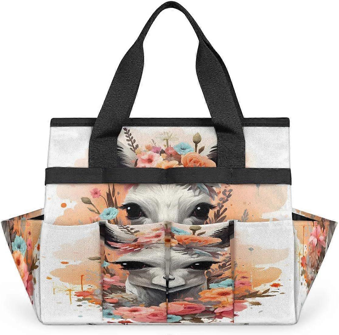 Alpaca Watercolour Wreath Garden Tool Bag Waterproof Garden Tool Storage Bag Heavy Duty Oxford Gardening Tool Bag with Handle & 10 Pockets for Men Wom