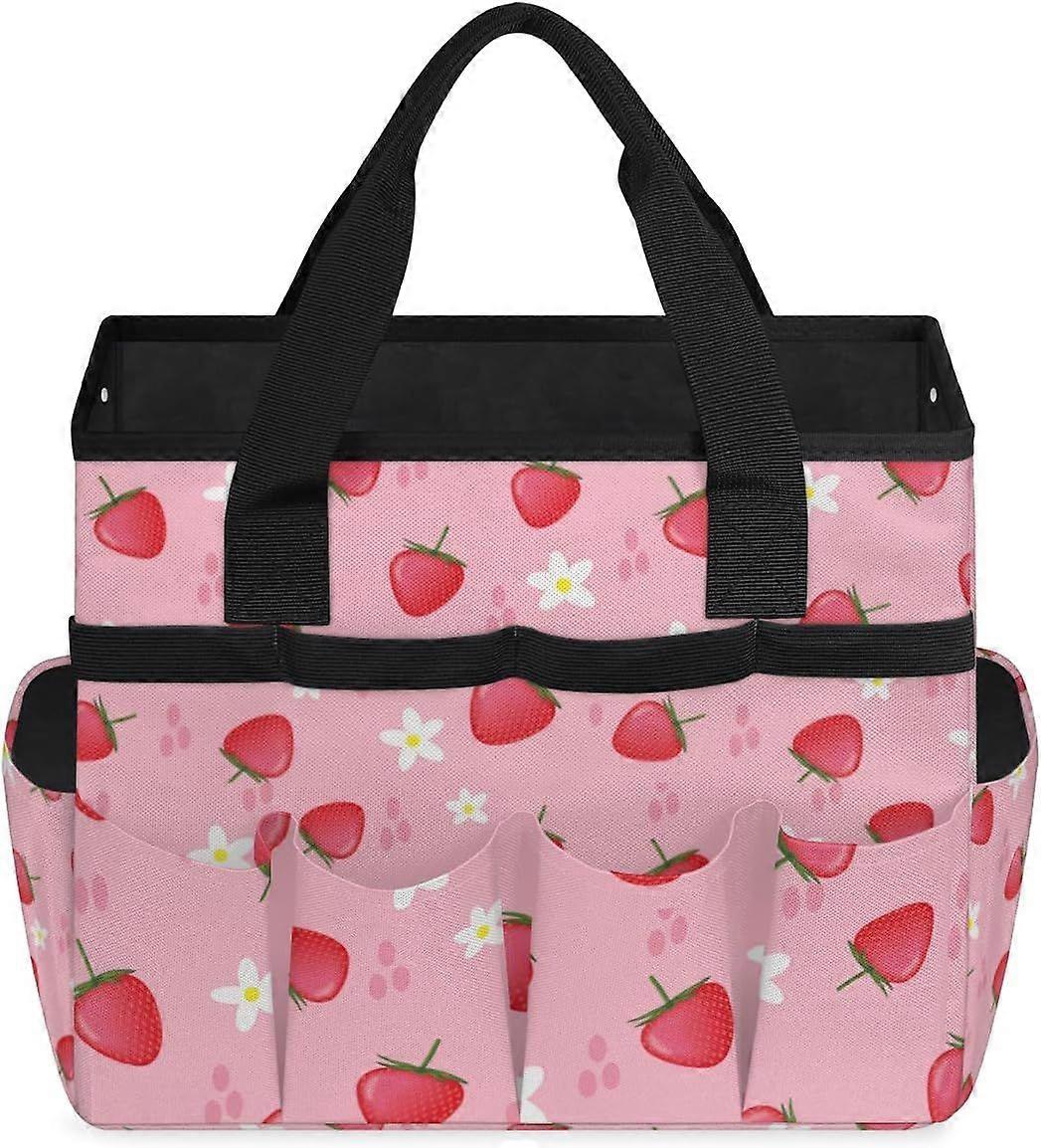 Strawberry Pine Print Garden Tool Bag with 10 Pockets Easy Access Garden Tote Storage Bag Wear-Resistant & Reusable with 2 Handles Gardening Gifts 13"