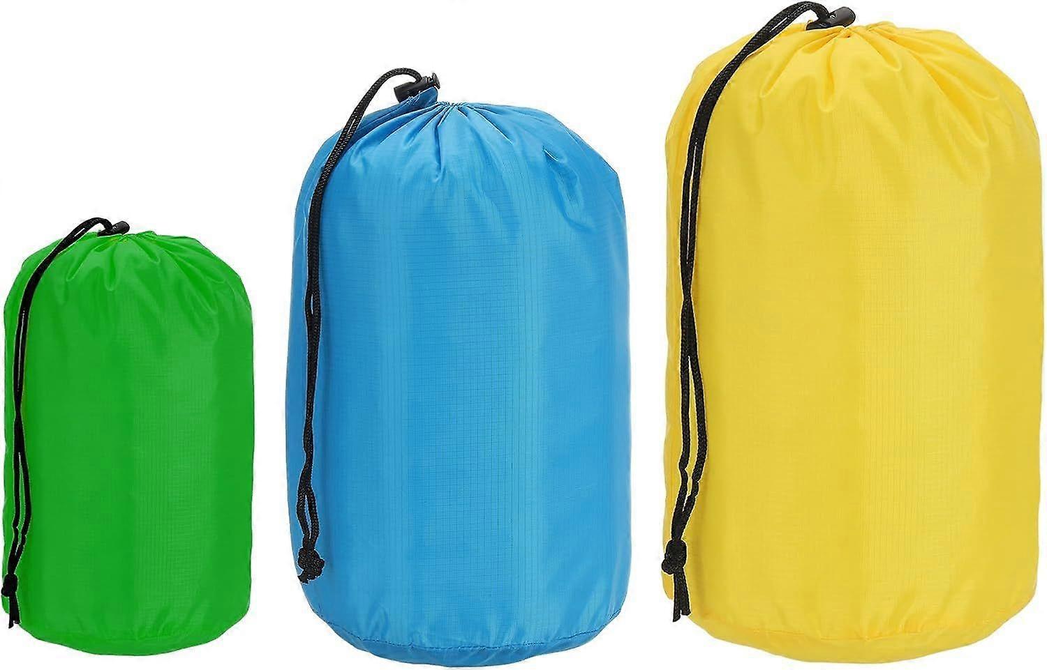 Stuff Sack 4x8/5x10/7x13, 3 Pcs Waterproof Outdoor Storage Sack Portable Drawstring Dust Flap Bag Sleeping Bag for Camping Hiking Backpacking, Green/B