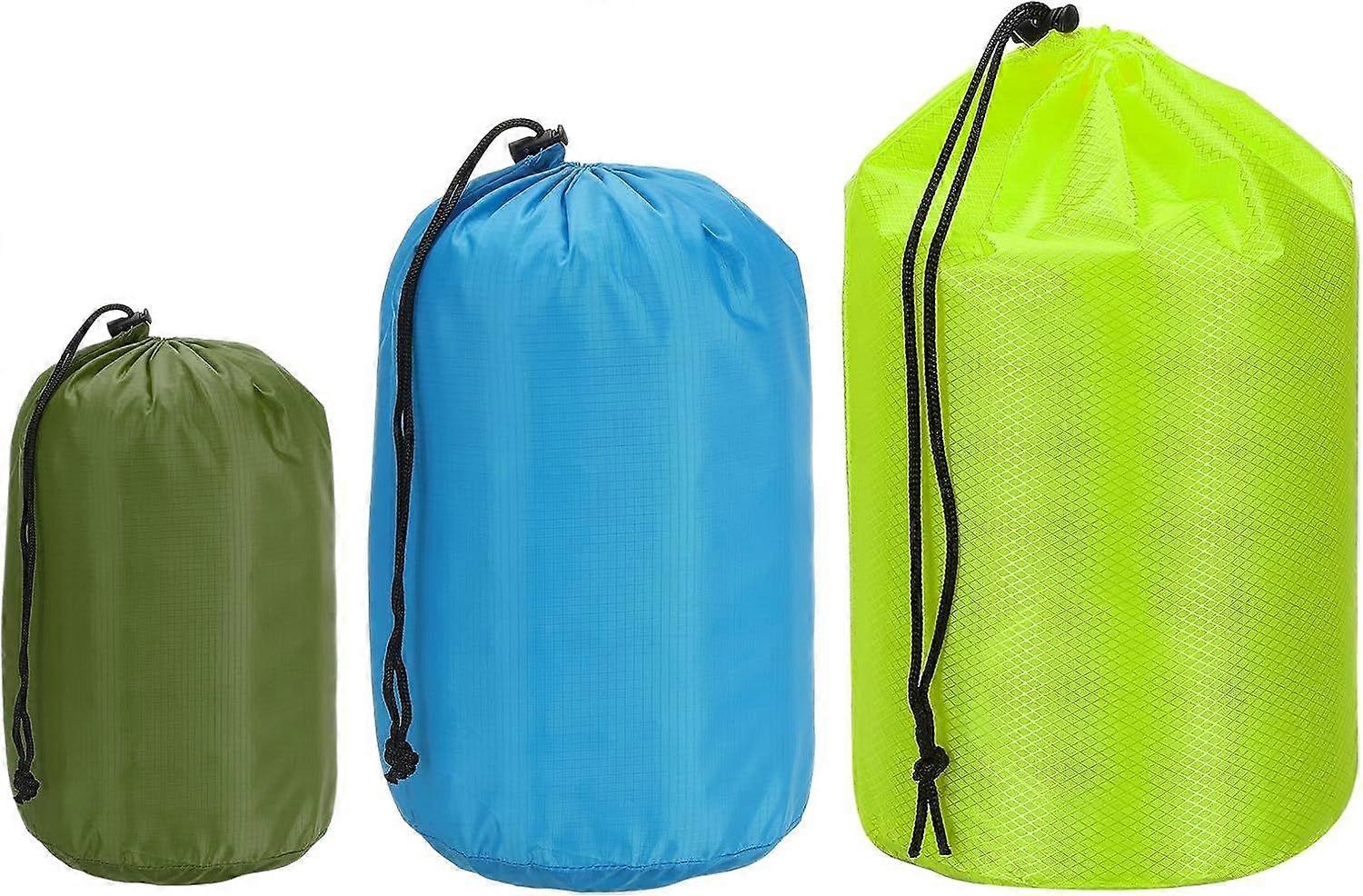 Stuff Sack 4x8/5x10/7x13, 3 Pcs Waterproof Outdoor Storage Sack Portable Drawstring Dust Flap Bag Sleeping Bag for Camping Hiking Backpacking, Green/N
