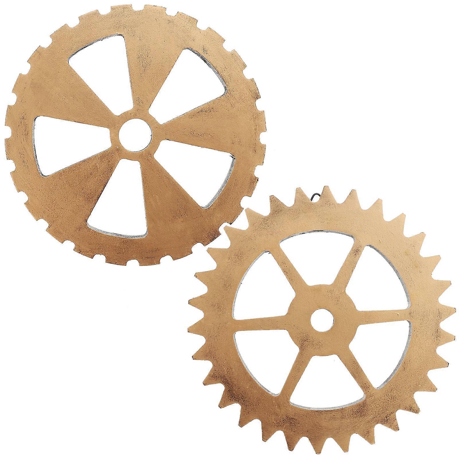 Golden Retro Gear Wall Ornament for Home Decor Unique Density Board Gear Pendant 2pcs