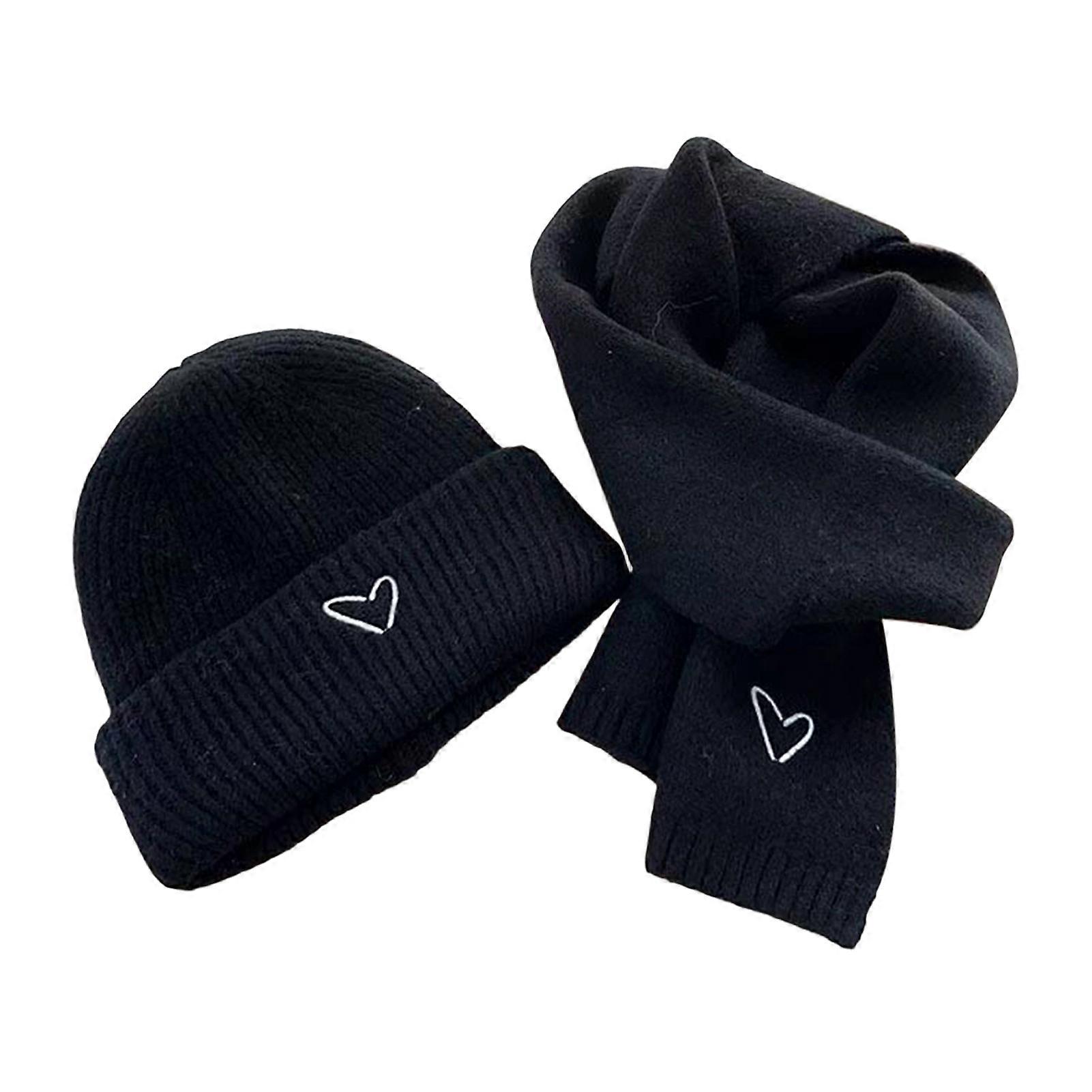 2Pcs/Set Knitted Hat Scarf Set Heart Embroidery Pattern Kids Brimless Hat Long Scarf Set Soft