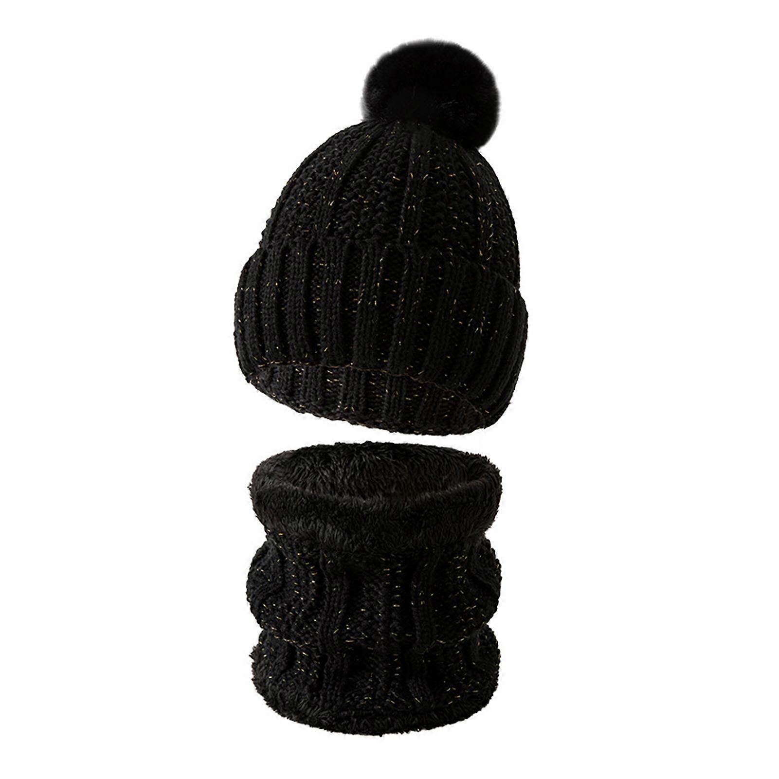 3Pcs/Set Winter Knitted Scarf Gloves Set Pom Pom Ball Fleece Lining Brimless Hat Touchscreen Gloves