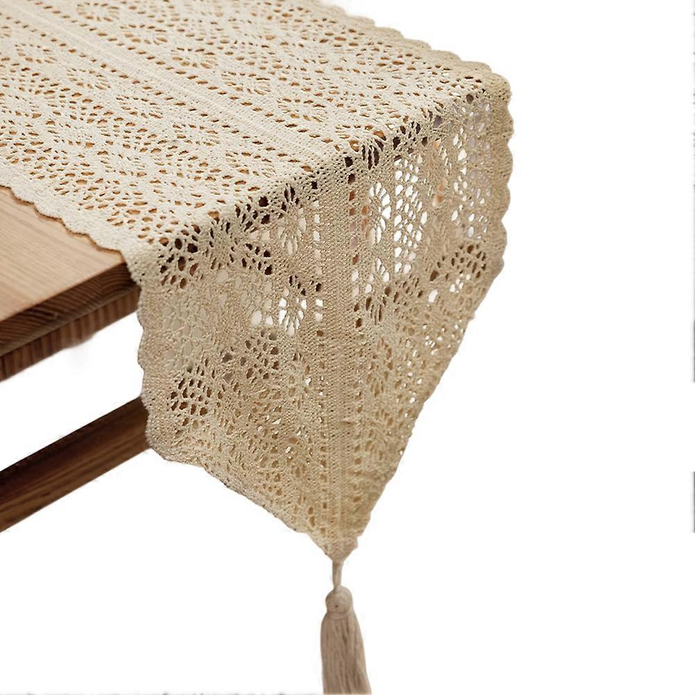 Lace Table Runner with Tassels, Table Banner for Boho Dining Bedroom Decor Rustic Bridal Party Holiday 9 X 71 in