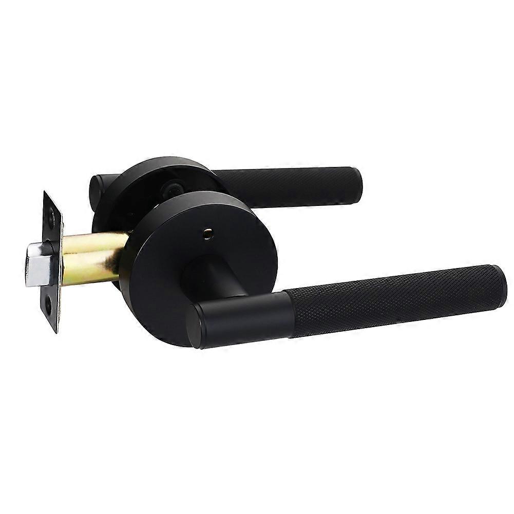 Privacy Door Handle Knurled Handle Lever Bedroom Bathroom Passage Door Lock Reversible Keyless Black