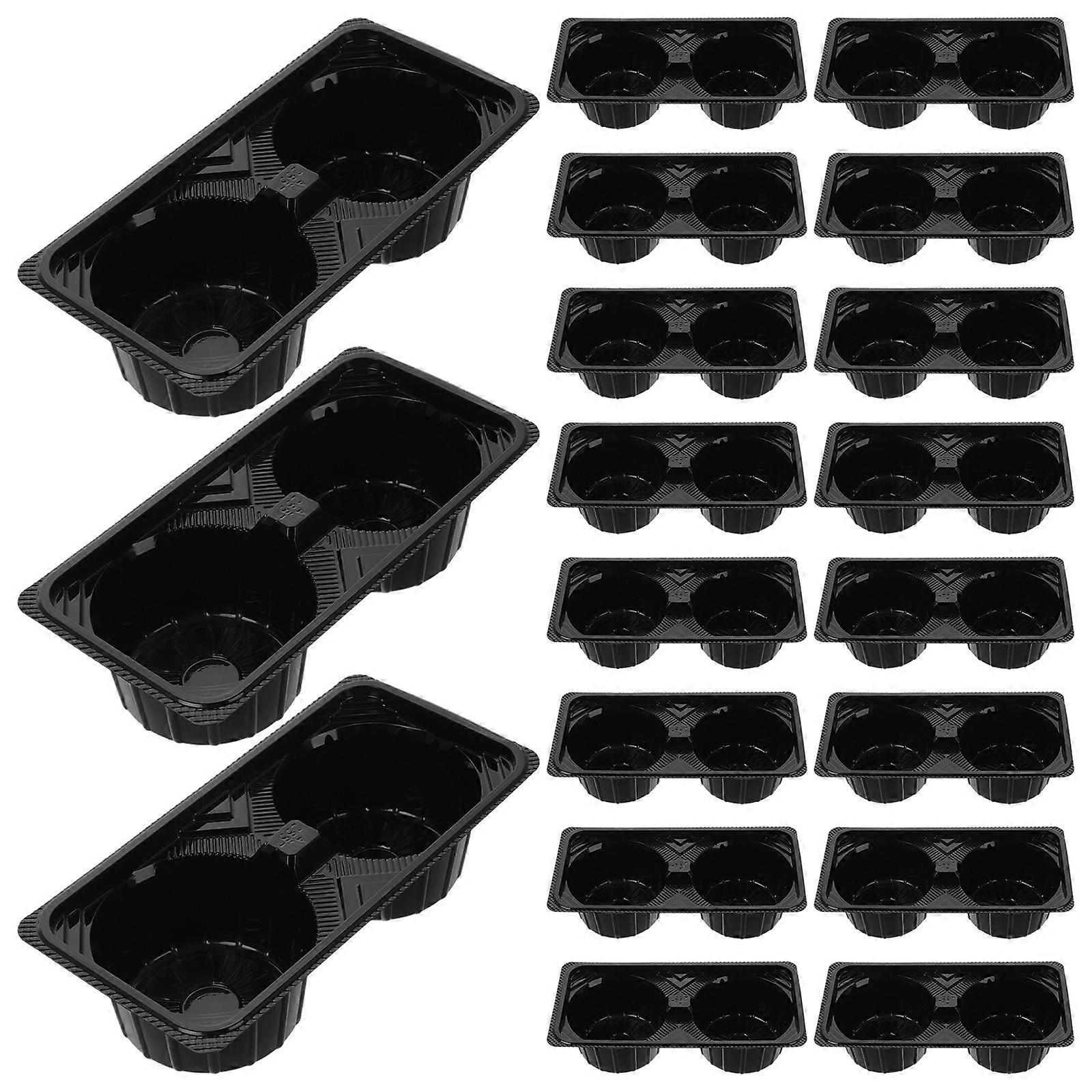 Portable Takeout Drink Tray for Coffee and Milk Tea with 2 Slots Black Plastic