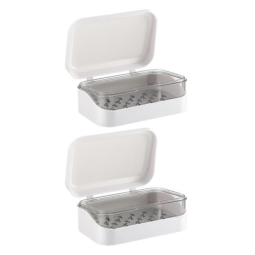 White Plastic Soap Container with Lid for Home Removable Design Keeps Soap Dry in Bathroom Kitchen 2 Pcs