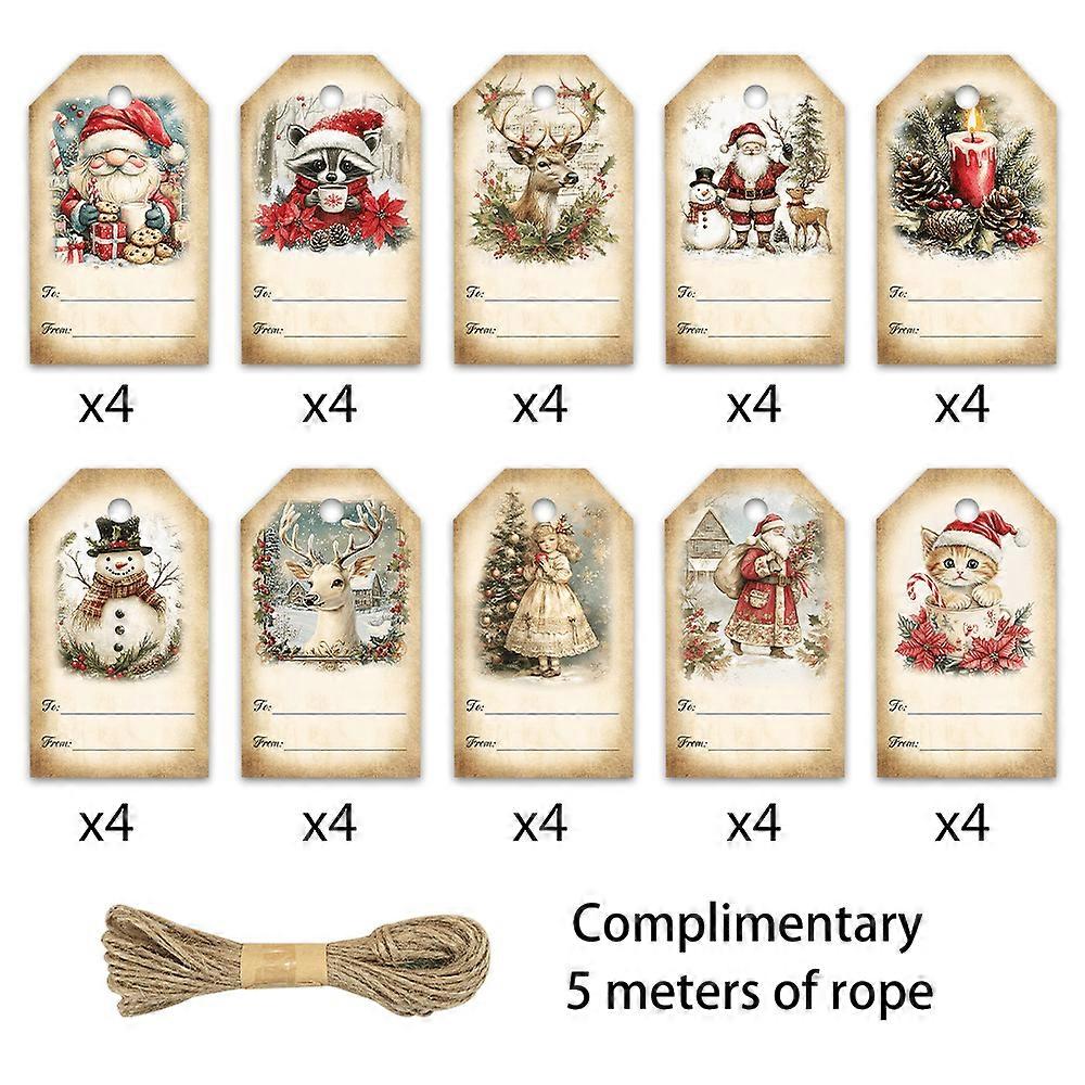 20/40pcs Christmas Gift Tags-with Santa,Snowmen,Deer-for Presents,Cards,Decorations-Compatible-Perfect for Christmas,Party Decor