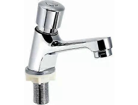 Chrome-plated faucet with automatic shut-off and timer, water-saving, for washbasin, compatible with kitchen and bathroom. Aquaforge. Made of high-quality brass with excellent chrome plating, resistant to rust and corrosion, durable and robust. PRESSURE-ACTIVATED TYPE. Easy to operate thanks to the smooth surface. The water flow is gentle and does not cause leaks. DELAY FUNCTION. Automatically shuts off and delays use for 4 to 6 seconds, saving water and money. EASY TO CLEAN. Can be cleaned with mild soap to ensure it does not stain. Easy to install with the included accessories. Suitable for domestic use, in kitchens, bathrooms and hotels. Color: Silver. Size: Dimensions as shown in the image. Quantity: 1 piece.
