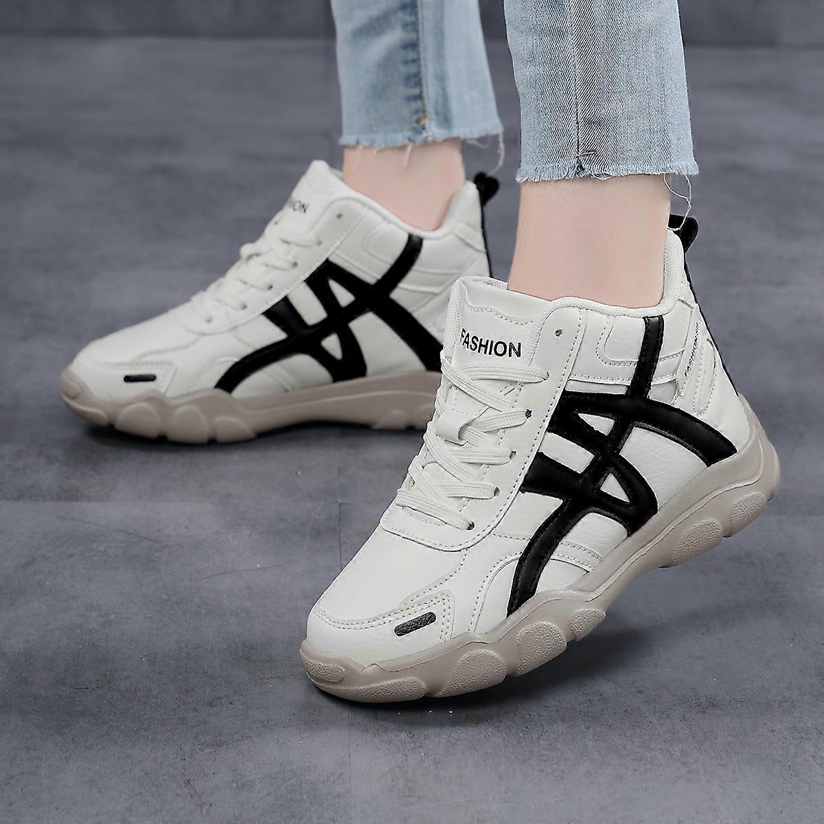 Women's Fleece-lined Lace-up Mid-top Thick-soled Non-slip Beige Plcom Size Fashionable Lightweight Waterproof Sports Casual Shoes