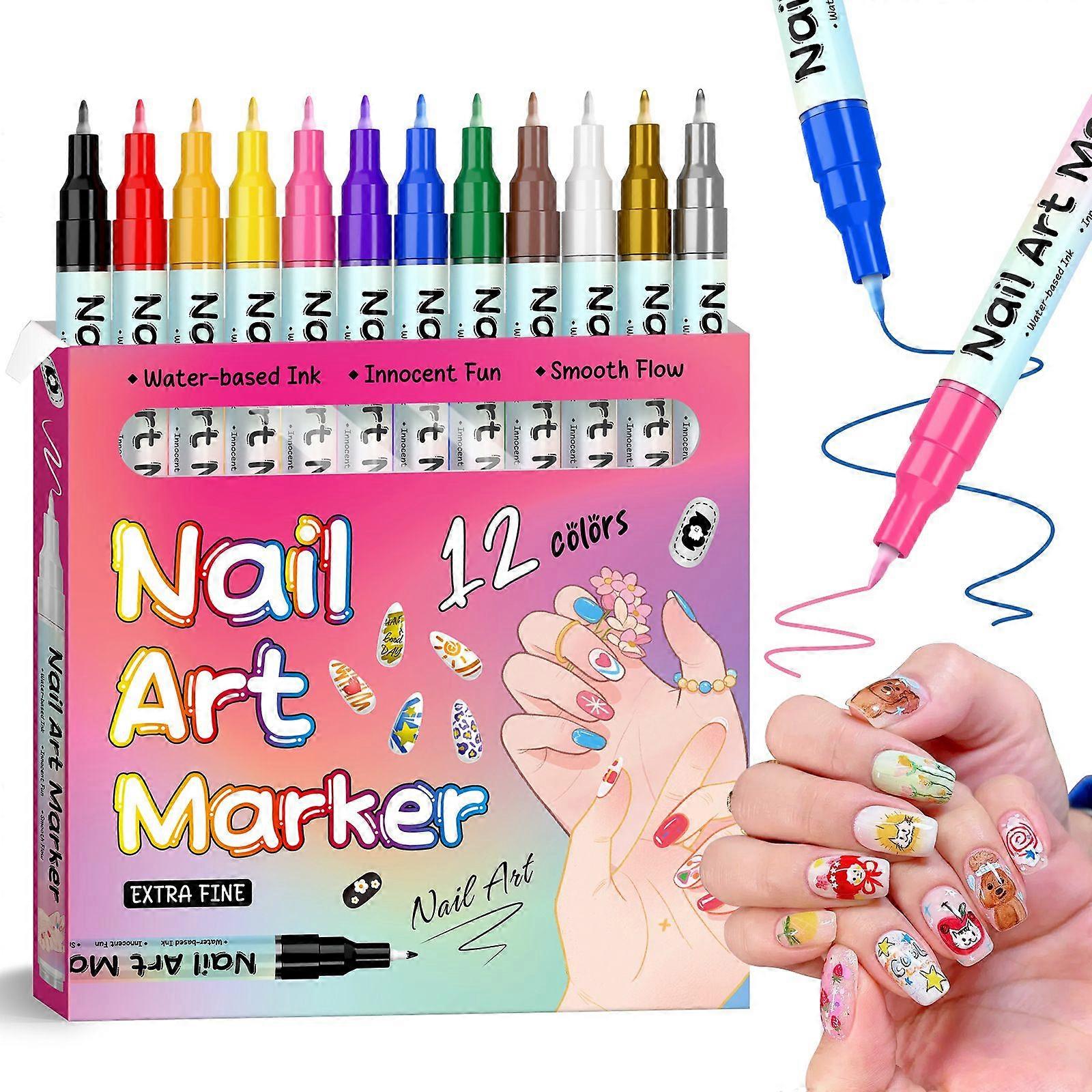 Quick-Dry Nail Art Markers Set DIY Doodle Pens for Gel Nails | Precision Liner Tool, Vibrant Colors, Easy-to-Use for Home Salon Art Designs