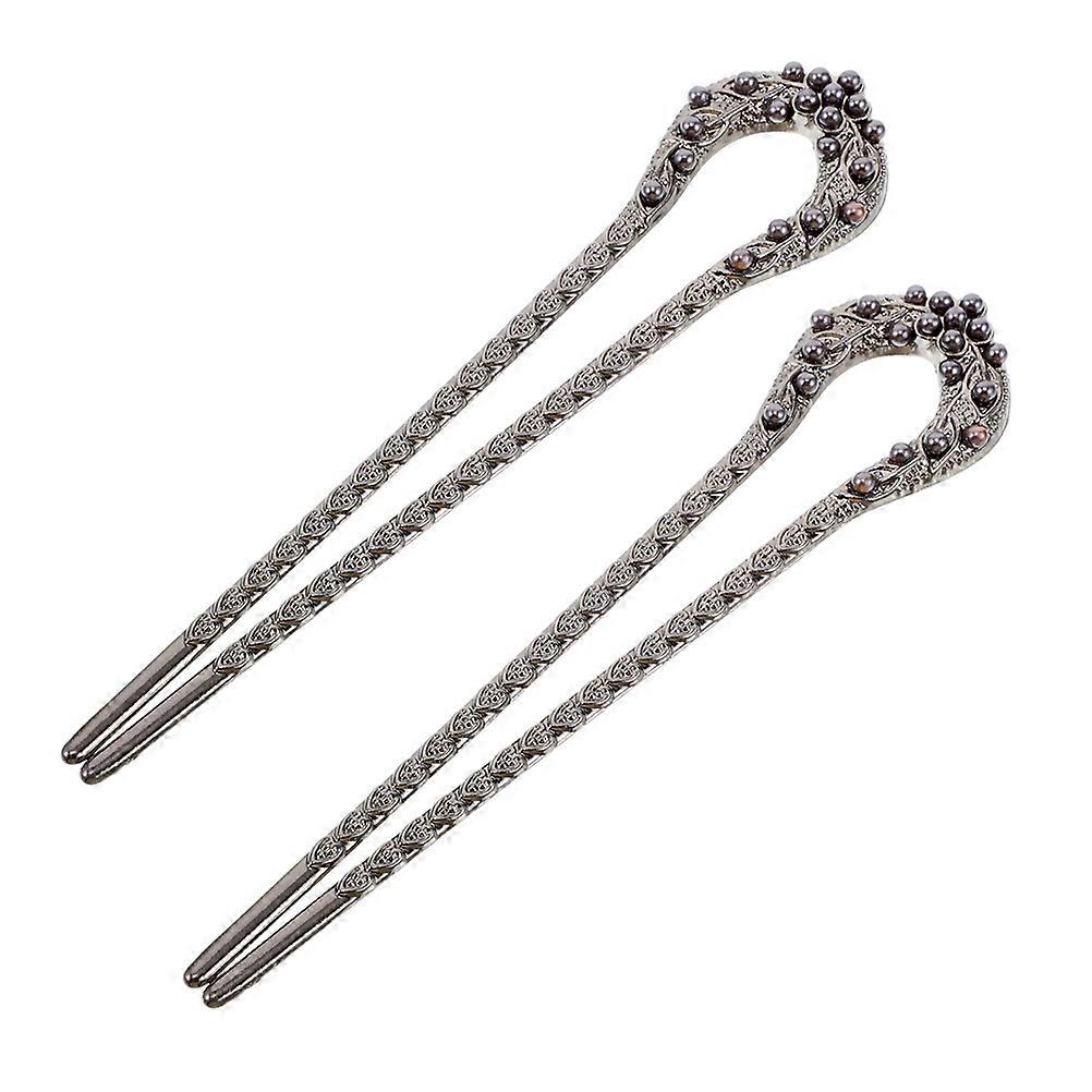 U-Shaped Alloy Hair Pins with Pearl Simulation for Women 2Pcs Black