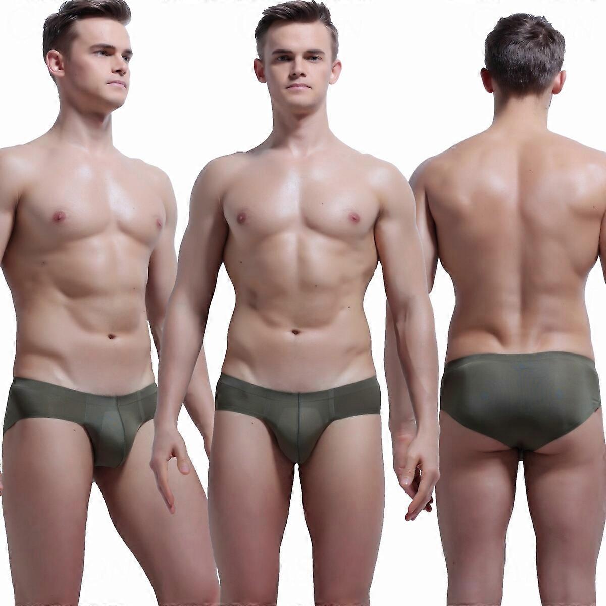 Men's Sexy Ice Silk Seamless Briefs Low Rise Comfortable Bikini Underwear M-3XL
