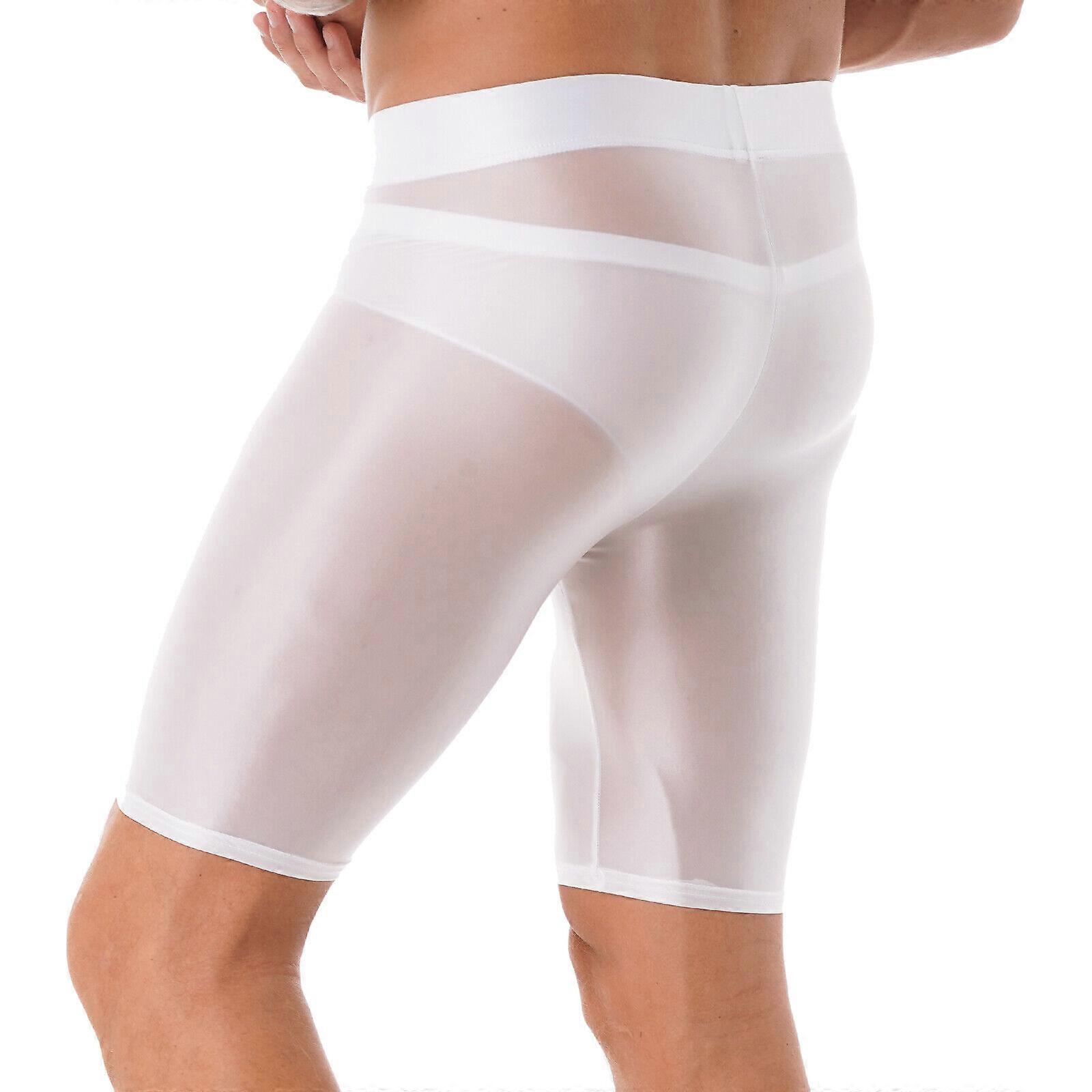 Mens Glossy High Waist Shorts Elastic Waistband Fitness Shorts Workout Swimwear