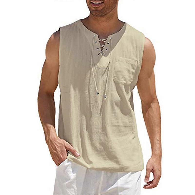 Men Vest Cotton Linen Tank Top Summer Training Muscle Gym Plain T-Shirt Tops Tee