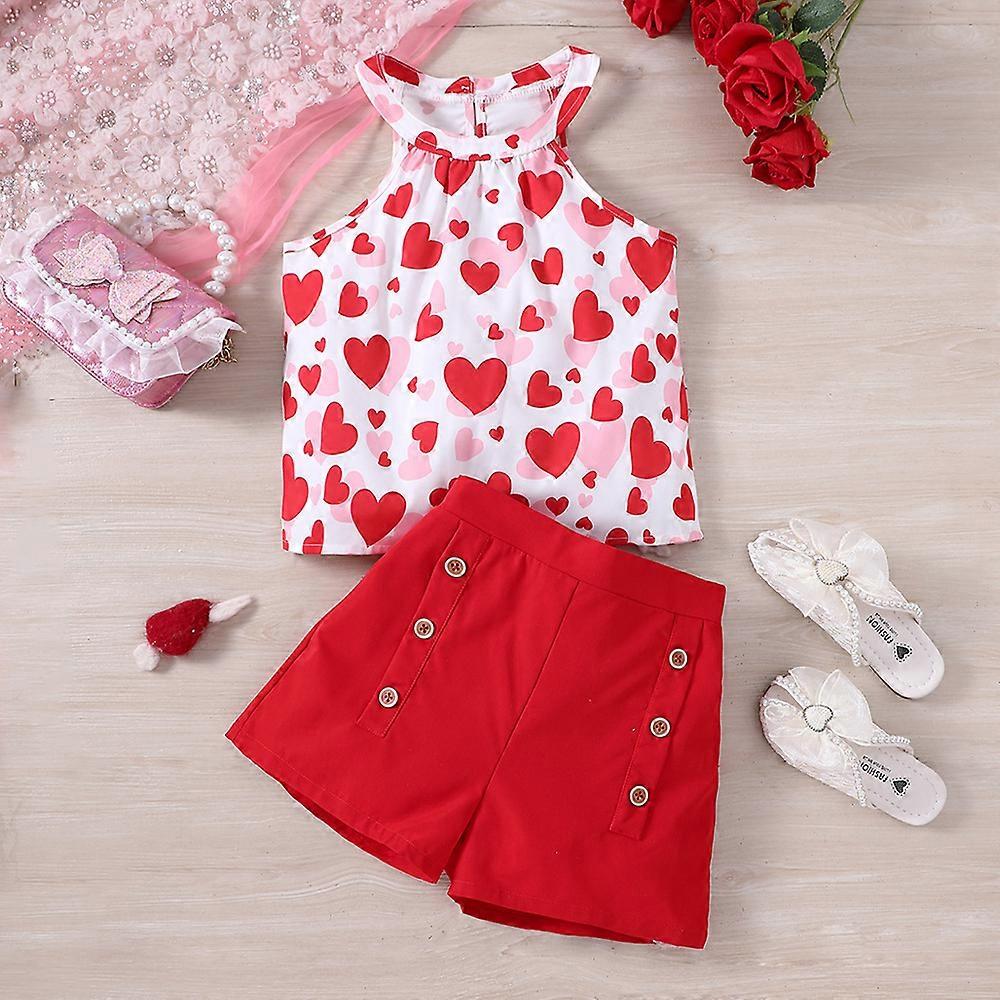 Kids Casual Clothing Sets Outfits for Girls Summer 2024 New Children Fashion Red Heart Print Halter Tops Short Pant 7-16Y