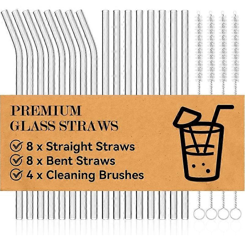 (R) 20 Packs Glass Straws Set, 8.5'' x 10mm Clear Drinking Straws for Smoothies, Shakes, Coffee, Juice, Sodas, Milk, , , Set of 8 Straight