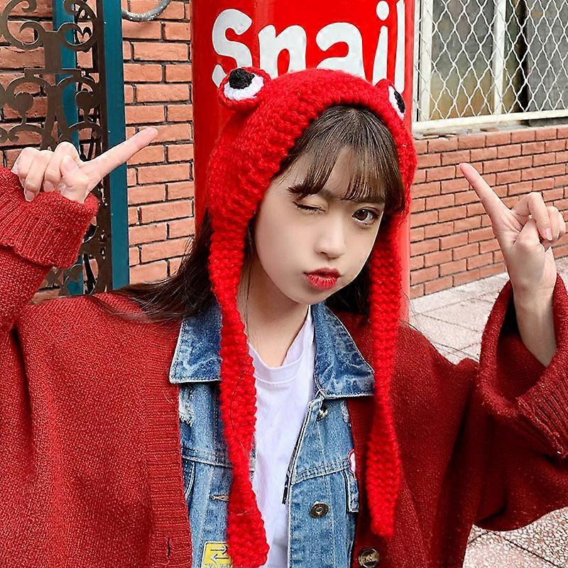 Funny Frog Hat Unisex Women Knitted Winter Warm Beanie Hat Cute Cartoons Crochet Hat Hip-hop Skullies Cap Party Dress Up