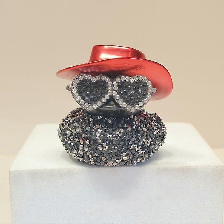 Diamond Rubber Duck for Dashboard, Car Ornaments Duck with Cowboy Hat & Sunglasses Funny Dashboard Decorations Cool Office Car Accessory